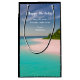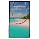 Gift bag with a beautiful photograph. A scenic tropical beach with aquamarine water and a white sandy beach with a lush forest in the back.