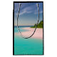 Gift bag with a beautiful photograph. A scenic tropical beach with aquamarine water and a white sandy beach with a lush forest in the back.