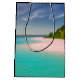 Gift bag with a beautiful photograph. A scenic tropical beach with aquamarine water and a white sandy beach with a lush forest in the back.