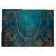 Sehr coole und wunderschöne türkisfarbene und kupferfarbene Patina mit Kupferkalligraphie-Geschenktasche. Die Farben sind lebendig und schön, und ich Liebe die Kalligraphie!