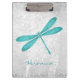 Ziehen Sie Notizen und Erinnerungen auf einer sicheren Oberfläche mit einer Aquamarinen Dragonfly Personalisierten Zwischenablage. Im Clipboard-Design finden Sie eine farbenfrohe Libelle, eine weiche, weiße, grüne Weinrebe vor einem hellgrauen Grunge Damask Hintergrund mit einem Bereich, der mit Ihrem Namen individuell gestaltet werden kann. Zusätzliche Geschenkartikel in diesem Design sowie eine Vielzahl von Farben.