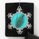 Aquamarine Pfau-Feder Schneeflocken Zinn-Ornament