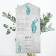Laden Sie sich mit einem Aquamarinen Peacock All in One Wedding ein, um Ihre Hochzeit zu verbringen. Das einladende Design besticht durch einen lebhaften Pfau, der sich auf einer zarten, weißen Blätterrebe vor einem grunen Hintergrund mit einer perforierten Antwortkarte ruht. Personalisieren Sie mit dem Bräutigam und den Namen der Braut zusammen mit dem Hochzeitstag und der Lage. Mit diesem Design sind auch weitere Hochzeitswaren erhältlich.
