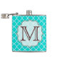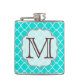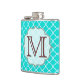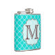 Aquamarine Quarterfoliengitter-Quarterfolie Monogramm Initial Personalisierte Custom Fabric Pattern Whiskey Flask
