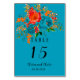 Aquamarine Rote Orange Botanische Blumenhochzeit Tischnummer