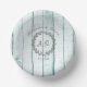 Personalisieren Sie eine einzigartige Papierschale für Hochzeitsgäste mit einem Set Aquamariner Rustikaler Monogram Wedding Paper Bowls. Das Design der Papierschüsseln zeichnet sich durch einen rustikalen Holzhintergrund aus, der mit einem schlichten eleganten Kranz versehen ist. Personalisieren Sie mit dem Bräutigam und den Namen der Braut zusammen mit dem Hochzeitstag. Mit diesem Design sind auch weitere Hochzeitswaren erhältlich.