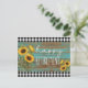 Eine aquamarine Holz rustikale gelbe Sonnenblumen glückliche Pensionskarte für sie, dass Sie leicht personalisieren können auf der Innenseite Karte Nachricht.