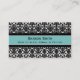Aquamarine schwarze Damast-Retro Mama-nennende Telefonnummerkarte