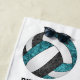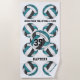 Dieses lustige Strandtuch zum Thema Volleyball zeigt ein Muster aquamariner, schwarz-weißer Volleybälle, die in einem Spiegelmuster angeordnet sind, mit anpassbarem Text zwischen den Volleyballs, dem aktuellen Teamnamen und dem Maskottnamen - der Name des Athleten und die Jerseynummer können personalisiert sein, sowie die weiße Hintergrundfarbe und Textfarbe - von katz_d_zynes