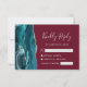 Aquamarine Silver Agate Burgundy Wedding RSVP Karte