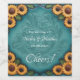 Aquamarine Sonnenblumen-Hochzeit mit geschliffenem Weinetikett