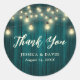 Rustikales Land aquamarine Hochzeitsaufkleber mit Streichlichtern vor einem Stallholzhintergrund. Diese bedanken Sie sich bei Ihren Hochzeitsaufklebern mit Ihren Hochzeitsdetails. Diese Gastgeschenk Hochzeit-Aufkleber sind perfekt für Ihre aquamarine rustikale Hochzeitsfeier mit ländlichem Thema. Sie können sie als Umschlag-Siegel, oder Gastgeschenk Hochzeit-Taschen-Etiketten, zum Beispiel. Matching-Elemente verfügbar.