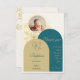 Mit dieser raffinierten und schön gestalteten Dankeschön Card verkünden Sie die Taufe Ihrer Tochter. Mit einer harmonischen Mischung aus gedämpftem Gold und tiefem aquamarin strahlt dieses Design Eleganz und Anmut aus. Die zarte Blütenzeilenkunst ergänzt das gewölbte Layout perfekt um eine subtile Touch der Natur. Eine raffinierte Mischung aus modernen Serif- und Script-Schriftart verbessert die zeitlose Ästhetik. Das personalisierte Foto oben macht diese Einladung zu einem sinnvollen Sake. Ideal für Taufen, Taufen und religiöse Zeremonien. Diese Dankeschön Card Set ist der perfekte Ort für ein herzliches Fest. B014