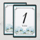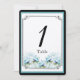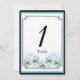 Aquamarine Tischnummer für Hochzeiten mit Blumenwa
