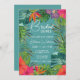 Lassen Sie sich für ein Party mit tropischem Flair rühmen! Diese tropische Einladung eignet sich ideal für Brautpartys oder alle tropischen Veranstaltungen. Mit tropischen Blumenelementen und aquamarinem Hintergrund. Diese Einladung schafft ein modernes und tropisches Ambiente für Ihren Polterabend oder Ihr Brautparty.
