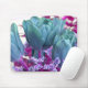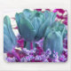 Hübsche Aquamarine Tulips mit rosa Blattwerk und kleinen lila Fußböden auf diesem Mauspad.