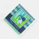 Designergeschirr, große Tischservietten in gemustertem Design in blauen, aquamarinen und hellen Kalkgrün. Glücklicher Geburtstagstext kann zu jedem Anlass oder für den Alltag personalisiert werden. Text, dekorativer Hintergrund oder Blumenbild sind alle abnehmbar.