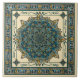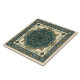 Ein Mandala Muster des befleckten Glases im aquamarinen Grün, Schatten des Blaus mit Goldakzenten, alle auf einem pfirsichfarbenen ecru Hintergrund. Karo die zu gestalten oder zu bestellen Wahlen, wie ist!