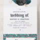 Aquamarine, schwarze und goldene gotische Hochzeitseinladung, die auf Ihre Eventspezifikationen zugeschnitten ist.