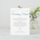 Diese wunderschöne Kapselkarte wurde entworfen, um unsere Aquamarine und grau-elegante Hochzeitseinladung zu ergänzen. Bieten Sie Ihren Gästen zusätzliche Informationen über den Empfang, die Unterkunft, die Reisearrangements, die Registrierung, die Website, die Anfahrtsbeschreibung oder alle weiteren Informationen, die Ihre Gäste benötigen, an. Das Design ist schlicht und elegant mit aquamarinem oder türkisfarbenem & grauem Text auf weißem Hintergrund mit silberfarbenem Imitat und blühenden Rahmen.