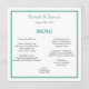 Aquamarine und graue Minimalistische Hochzeitsempf Menükarte