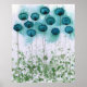 Aquamarine und grüne Pflaumen, Aquarellmauer, Blum Poster