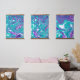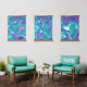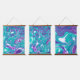 Aquamarine und Lila Marble Fluid Art Hangband Wandteppich Mit Holzrahmen