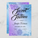 Eleganter Winter "Sweet 16 ( Sechzehn ) Geburtstagsparty" Einladungs-Design mit Aquamarinen & Lila Glitzer Sparkling Snowflakes Motiv, individuelle Name und Details Text. Einfach zu bedienen und einfach zu personalisieren. Bestellen Sie noch heute!