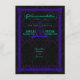 Diese kühn und hell aquamarine, lila und subtile schwarz-Damast Hochzeitsreisekarte hat ein Vintages, altes Hollywood-Ambiente mit altmodischem Briefdesign, einschließlich aufwändiger Skriptelemente, dekorativer Banner, Sternen und einem Wirblen Ampersand. Die extravagante Einladung wird durch Vintages Design und stilvolle Plakate inspiriert. Der Text lautet: "Sie sind zum Hochzeitsempfang von [anpassbarer Name] & [benutzerdefinierbarer Name] [anpassbares Datum] [anpassbare Zeit] eingeladen. Wir freuen uns, Sie bei einer unvergesslichen Feier begrüßen zu dürfen". Weitere Personalisieren Sie die Einladung mit den Empfang-Informationen und Adresse, in der Box mit gepunkteten Rand. Diese Hochzeitssuite ist ideal für alle, die nach einer kindischen, historischen, Vintagen oder einmaligen Hochzeitsfeier mit Empfang suchen.