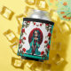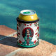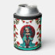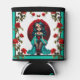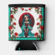 Aquamarine und Rote Rosen Zuckerschädel Dosenkühler