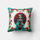 Aquamarine und Rote Rosen Zuckerschädel Kissen