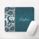 Dieses elegante, aquamarine grün-silberne Damast Mousepad hat einen Platz für Ihren Namen, Monogramm oder anderen Text.