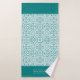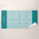 Aquamarines blaues und weißes Damast-Muster und gekalkte Ränder Bath Handtuch Set. Das Badetuch weist ein elegantes, aquamarin-weißes Damastmuster auf, und die kurzen Bänder sind mit geschliffenen Kanten aquamarin. Es gibt auch einen Rahmen mit Ihrem Familiennamen. Das Handtuch zeigt einen geschossenen Rahmen, während das Schlagtuch in der Mitte mit einem Damast-Rahmen und dem Monogramm aquamarin ist. Sie können es mit Ihrem Familiennamen und Monogramm personalisieren.