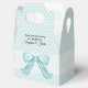 Hübscher besondere Anlass bevorzugt Geschenkboxen in einem Aquamarin mit weißen Polka-Punkten. Die Grafik eines laky weißen Band, läuft um die Mitte der Box und ein Aquamarine Satin schauend Bogen, schmückt die Vorderseite. Personalisieren Sie den schwarzen Text für Ihren Anlass. Großartig wie Gastgeschenk Hochzeiten, Geburtstage und Duschen.