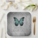 Für Hochzeitsgäste ist ein einzigartiger Papierteller mit einem Set Vintager Butterfly Damask-Teller ideal. Die Papierplatte zeichnet sich durch einen lebendigen Schmetterling gegen ein Vintages Damast-Muster aus. Personalisieren Sie mit dem Bräutigam und den Namen der Braut zusammen mit dem Hochzeitstag. Mit diesem Design sind auch weitere Hochzeitswaren erhältlich.