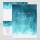 Doppelseitige Karte abstrakt moderne Kunst aquamarines Aqua auf einem weißen Hintergrund Hochzeitsprogramme. Bearbeiten Sie diese Hochzeitsprogramme mit Ihren eigenen Namen, Terminen, Zeremoniell, Begleitern von Hochzeitsfeiern. Einfaches und dennoch elegantes Programm ersetzt einfach den Sample-Text durch Ihre Hochzeitsinformationen. Moderne Hochzeitsfeierlichkeiten. Original abstrakte Waschmalerei und -design von Sarah Trett. www.sarahtrett.com für www.mylittleedenweddings.com