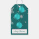 Tag deine Weihnachtsgeschenke für die Empfänger dieser Weihnachtszeit mit einem Aquamarinen Weihnachtsgeschenktag. Das Geschenktag-Design bietet ein Trio von hängenden Weihnachtsschmuck mit fallenden Schneeflocken und einem dunklen aquamarinen Hintergrund. Mit diesem Design sind auch zusätzliche Geschenk- und Urlaubsartikel erhältlich.