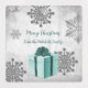 Teilen Sie Ihr Urlaubserlebnis mit Freunden und Familie mit diesen Aquamarinen Weihnachtsgeschenkplatten. Das Label design besticht durch ein lebendiges, verpacktes Weihnachtsgeschenk mit grauen und weißen Schneeflocken vor grauem Grunge-Hintergrund. Freuen Sie sich auf einen Raum, den Sie mit Ihrem eigenen Urlaubsgruß und Familiennamen persönlich gestalten können. Zusätzliche Geschenkartikel und Wohngestaltungen sind mit diesem Design ebenfalls erhältlich.