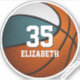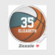 Der Basketballaufkleber für Jungen und Mädchen ist mit einer einfachen Basketballgrafik mit aquamarinen und weißen Mannschaftsfarben auf zwei Basketballplatten und einem leicht anpassbaren Spielernamen sowie einer großen Trikotanzahl in einem Schriftart im Buchstabenstil - von katz_d_zynes