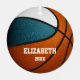 Dieses Team farbenfrohe Basketballkornament für Jungen und Mädchen zeichnet sich durch das realistische Bild eines Basketballs aus, der aus zwei farbigen Tafeln besteht - einem aquamarinen und einem Weißen -, die mit dem Namen des Spielers und dem Jahr des Gedenkens durch katz_d_zynes die Vorder- und Rückseite des Ornaments personalisieren