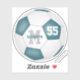 Diese Mannschaft Farben Fußball Aufkleber für Mädchen oder Jungen zeigt das realistische Bild eines Fußballballs, der aquamarine und weiße Paneele hat - den Namen des Spielers, das Monogramm und die Trikot-Zahl anpassen - von katz_d_zynes