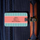Wechselnde aquamarin-weiße Streifen. Das Muster wird durch ein horizontales Korallenrosa-Band durchquert, in dem Sie Ihren Text hinzufügen können.
