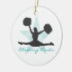 Eine Silhouettecheerleader mit pom poms auf einem aquamarinen Sternhintergrund mit aquamarinem Text, der "das Zujubeln liest, schaukelt" auf Cheerleader T - Shirts, Hoodies, Tassen, Karten, Taschentaschen, Schlüsselanhänger, iPad Hüllen, Andenken und viel mehr.