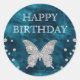 Aquamariner Acrylic & Silver Glitzer Butterfly Geb Runder Aufkleber
