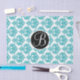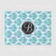 Aquamarines Aqua Glam Damask Monogram Letter Initial Tissue Paper