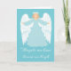Ein sanfter, sanfter aquamariner Engel schmückt diese Weihnachtskarte mit dem Wort "Engel, die wir auf Hoch gehört haben". Im Inneren lautet die Unterschrift: "Wünschen Sie sich ein himmlisches Weihnachtsfest!" Sie können den Text ändern.