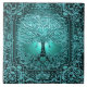 Ein wunderschönes verziertes Design mit einem aquamarinen Lebensbaum mit einem verzierten Rahmen und einem Herz an den Wurzeln. Es gibt einen Nachthimmel-Hintergrund.