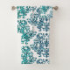 Aquamariner blaues Grün-Blumendamast auf weißem Badhandtuch Set