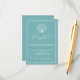 Diese helle, aquamarine, blaue Empfang-Kapselkarte mit einer Jakobsmuschel-Muschel an der Spitze, einem eleganten Drehbuch und einem Rahmen rund um den Rand. Bitte lesen Sie die Kollektion für die Erholung der passenden Hochzeitssuite und weiterer passender Produkte.