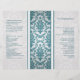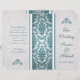Aquamariner Damast auf einem silbernen Gradientenhintergrund Hochzeitsprogramm Flyer.